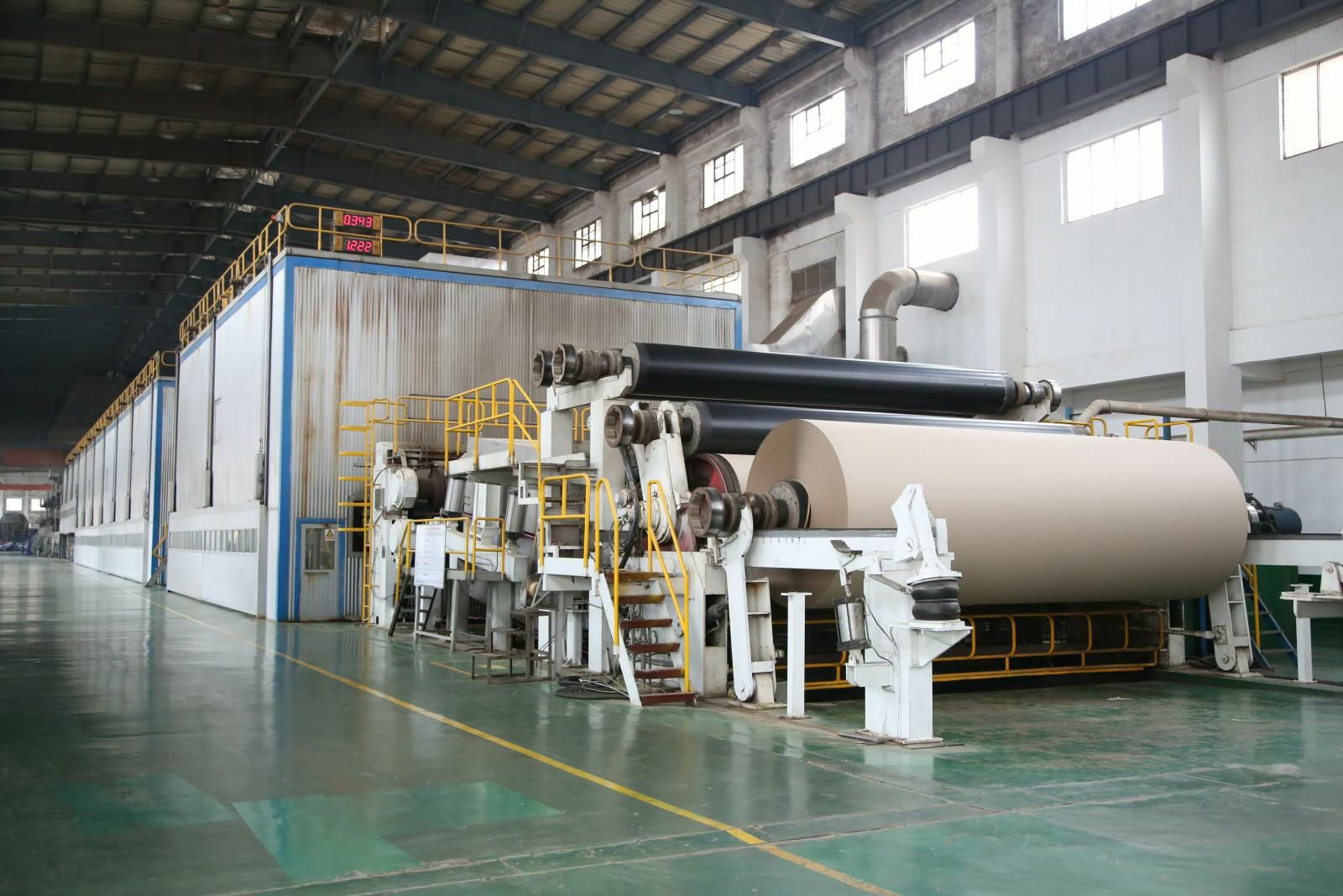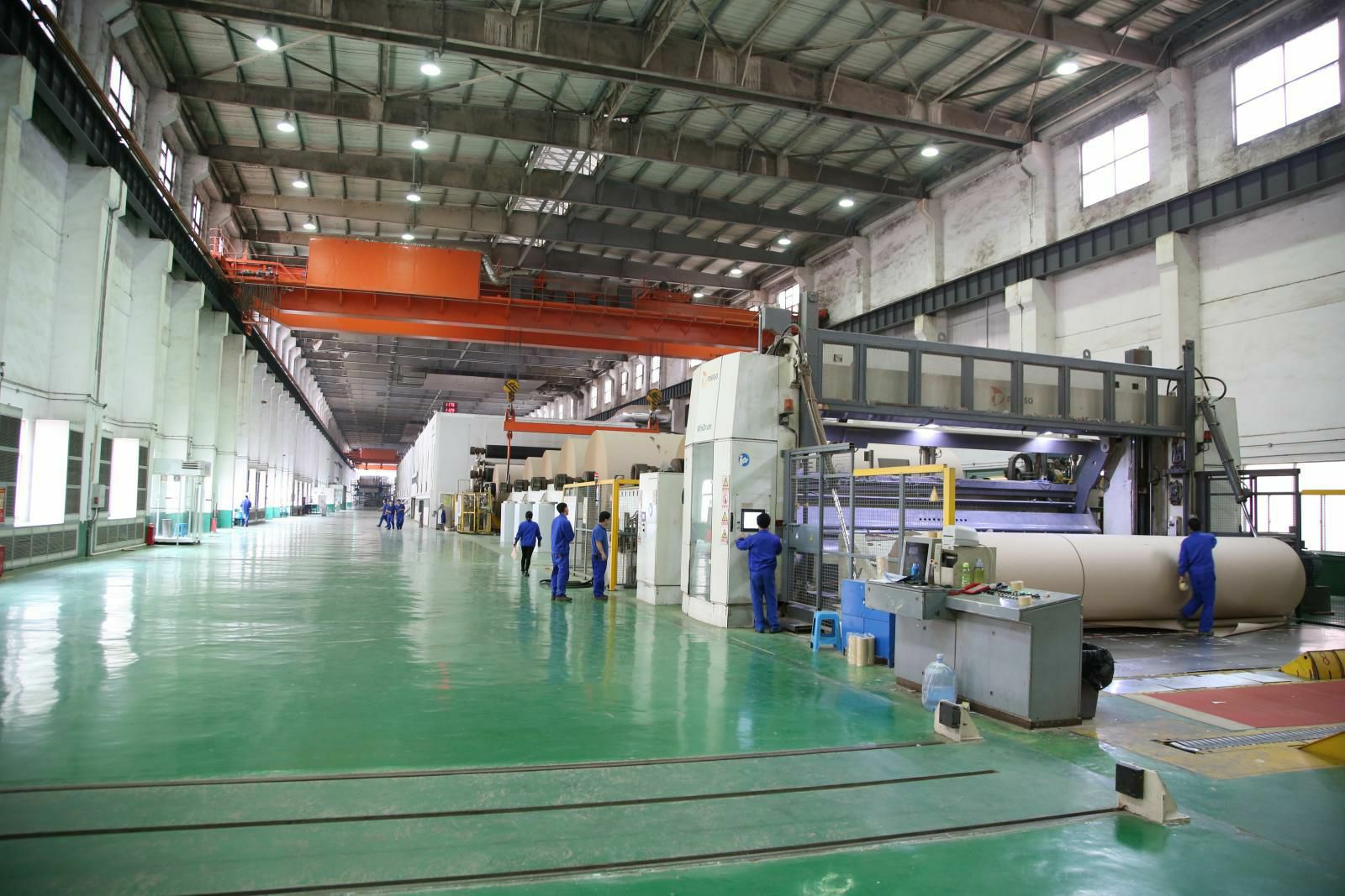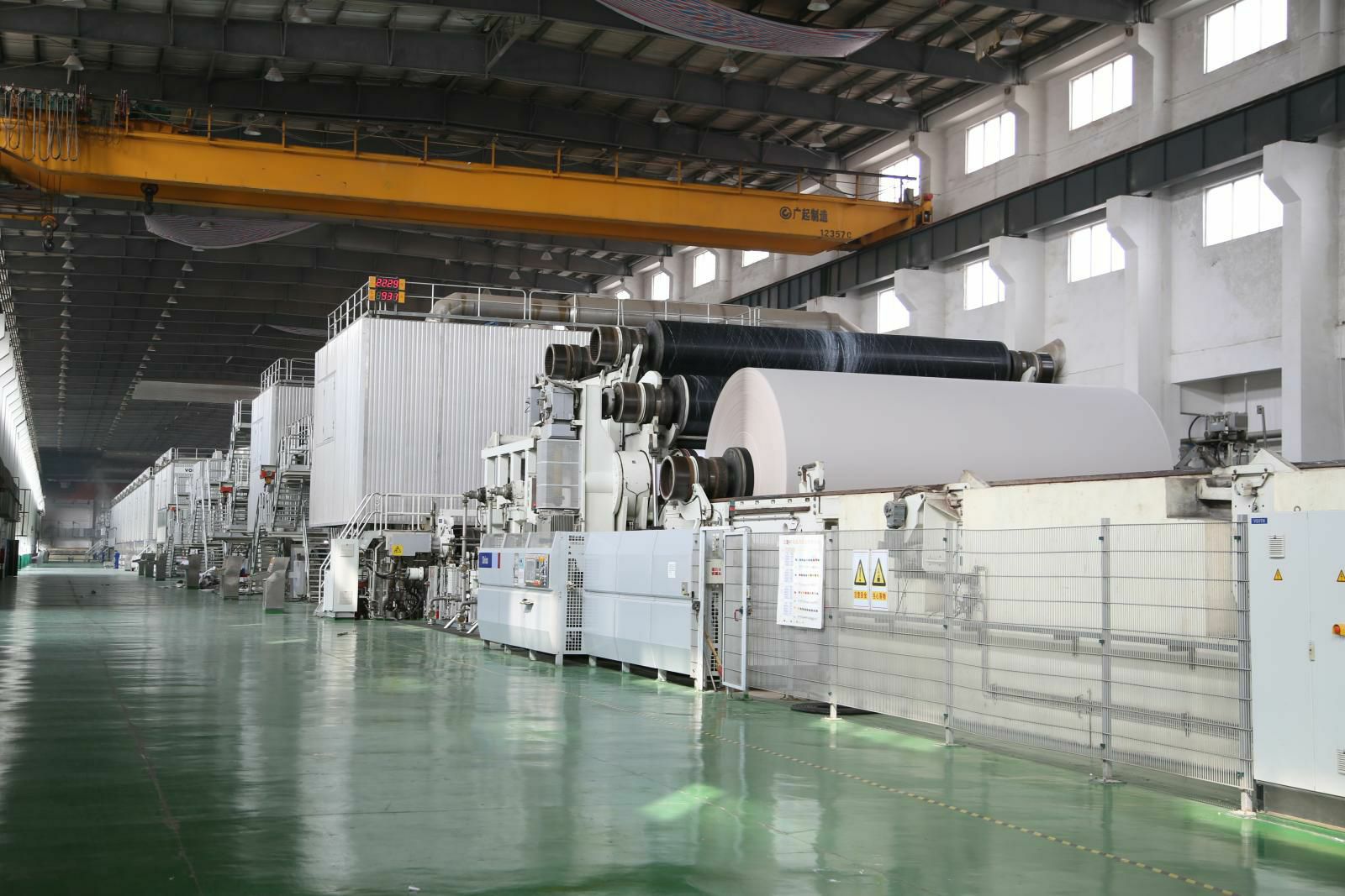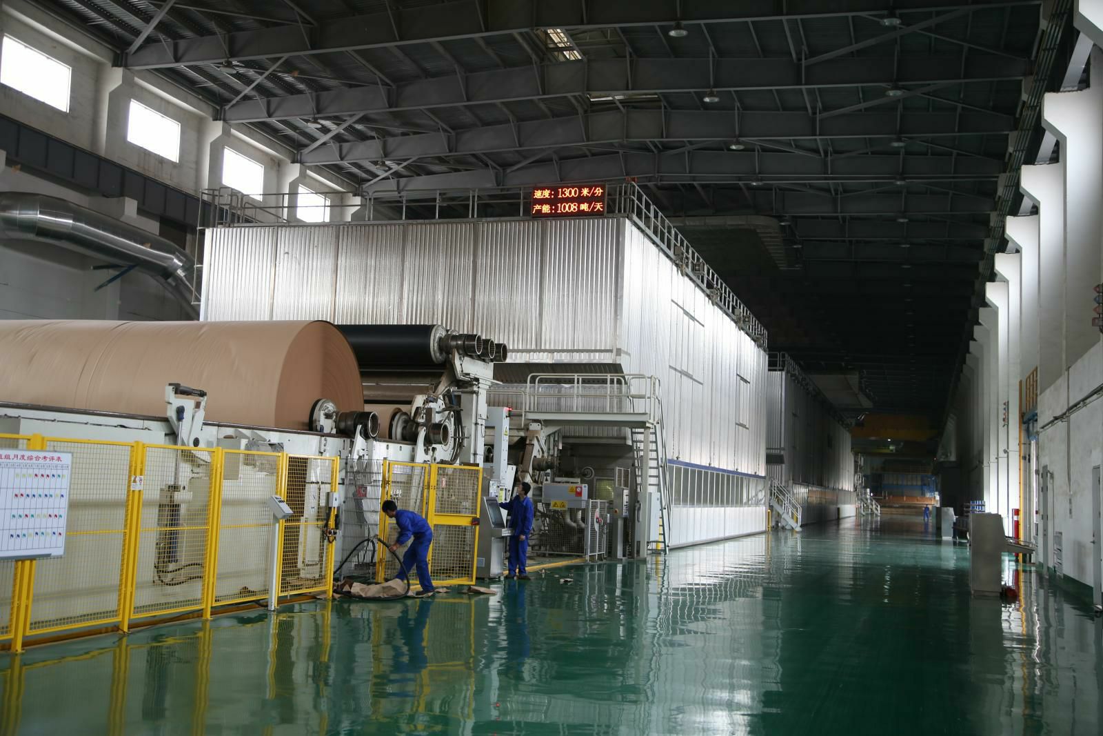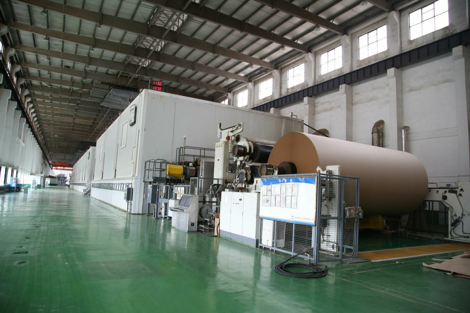 PM5造纸生产线,纸机是美卓(芬兰)制造的先进造纸设备,幅宽6.6米,设计车速1200米/分,目前运行最高车速已达1250米/分。主要生产90-220克的挂面箱板纸,年产量45万吨,带领北京志豪艺术培训学校有限公司开启了包装纸生产的新纪元。